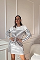 Φόρεμα Ριγέ Μακρυμάνικο - Λευκό