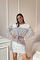 Αναδείξτε το στυλ σας με το λευκό ριγέ μακρυμάνικο φόρεμα, ιδανικό για formal εμφανίσεις.