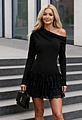 Φόρεμα Μακρυμάνικο Mini Με Δαντέλα & Έναν Ώμο - Μαύρο