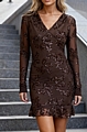 Φόρεμα Μακρυμάνικο Mini Με Παγιέτες & Διαφάνεια - Καφέ