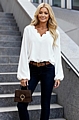 Αναδείξτε το στυλ σας με αυτή τη λευκή μπλούζα με μακριά μανίκια και κομψό σχέδιο στο ντεκολτέ.