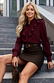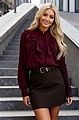 Αναδείξτε το στυλ σας με το κομψό πουκάμισο με βολάν σε βαθύ μπορντό χρώμα.