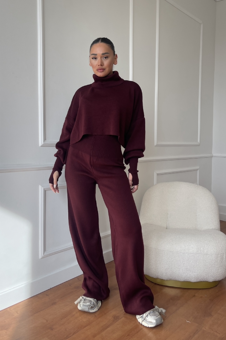 Σετ Πλεκτή Μπλούζα Ζιβάγκο & Παντελόνι - Μπορντό