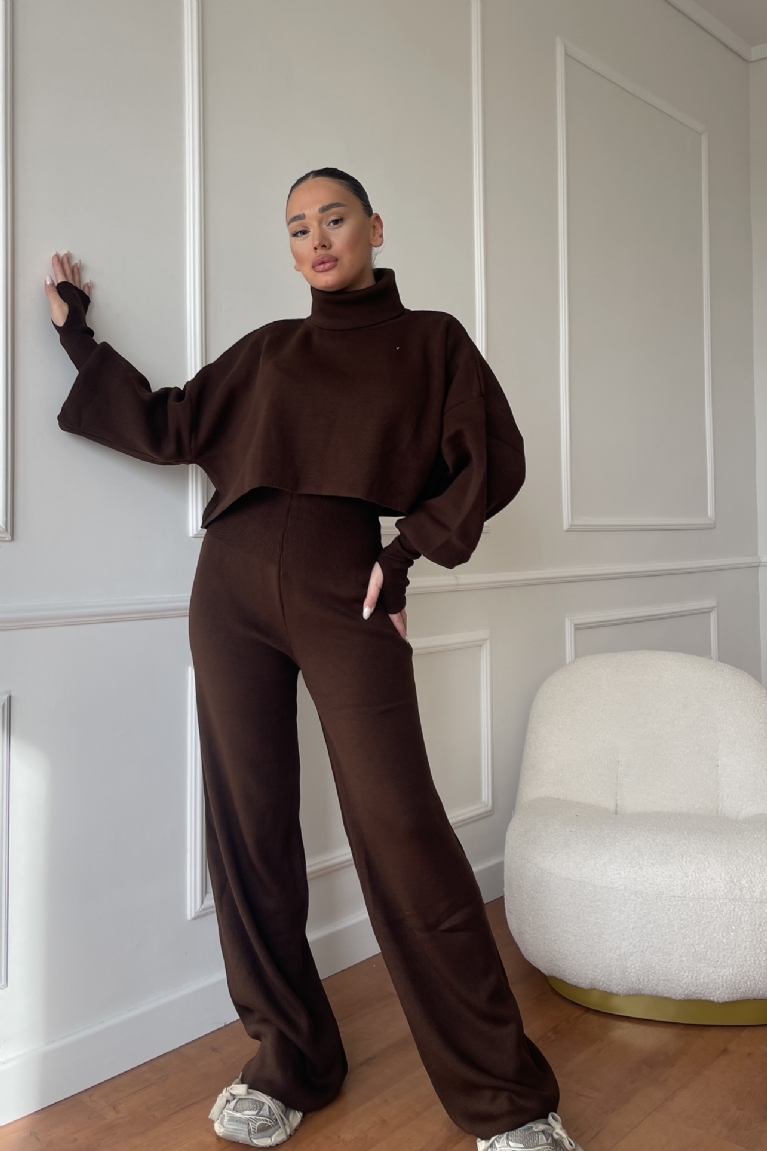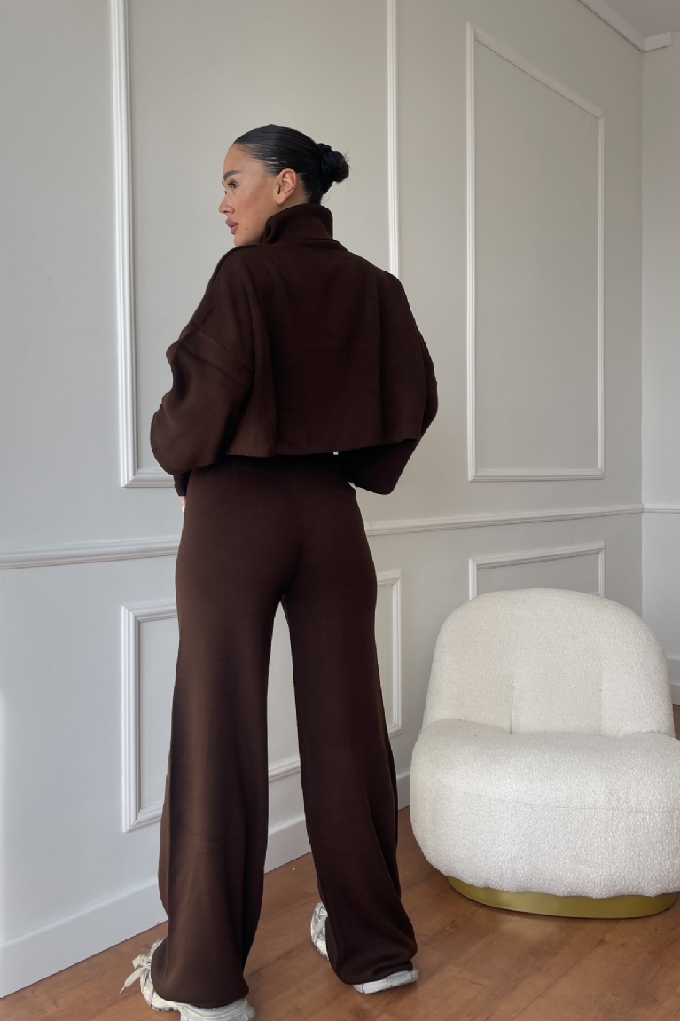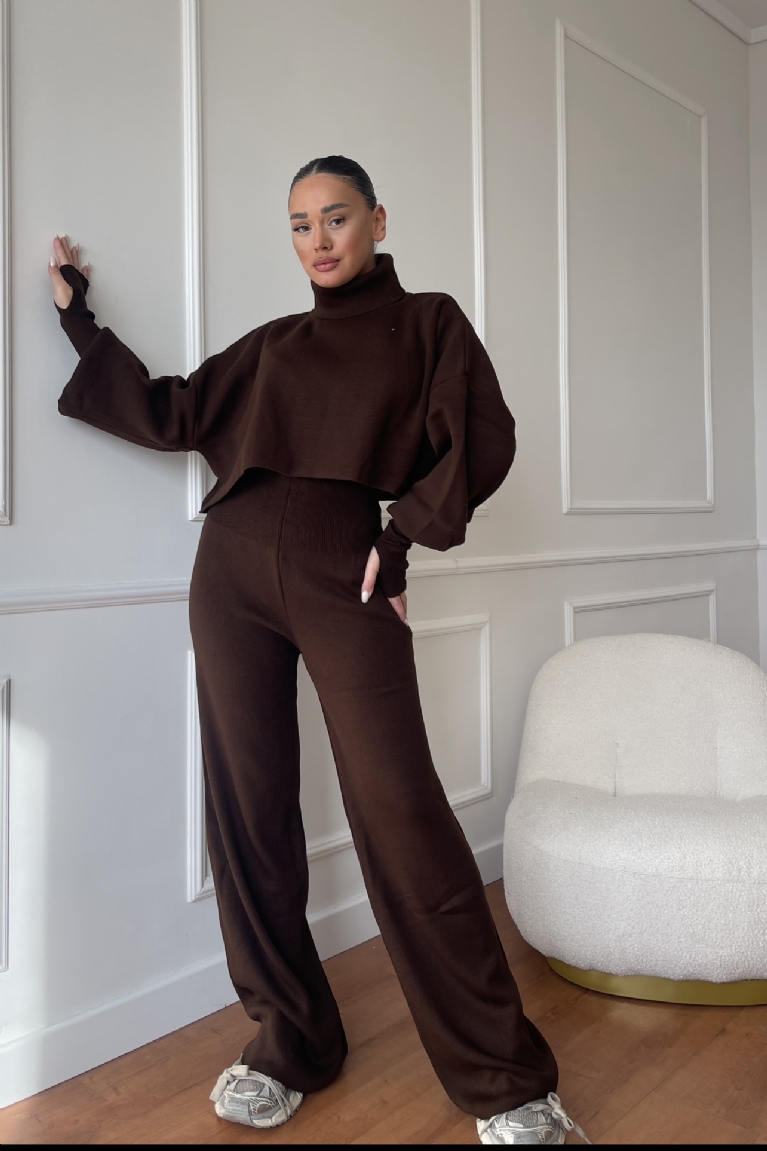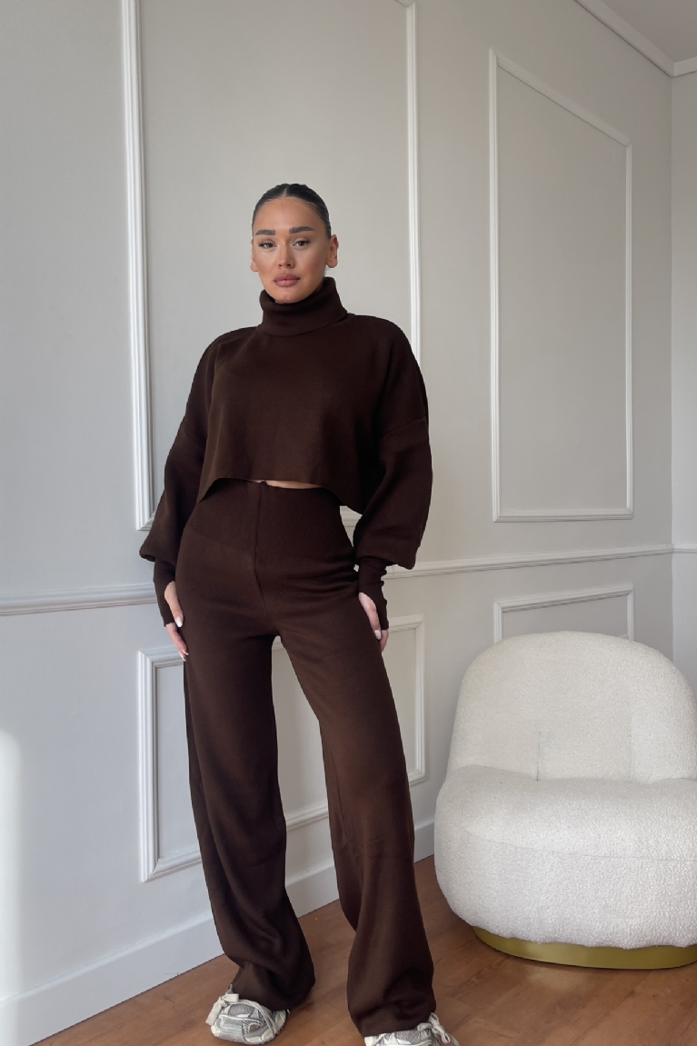 Σετ Πλεκτή Μπλούζα Ζιβάγκο & Παντελόνι - Καφέ