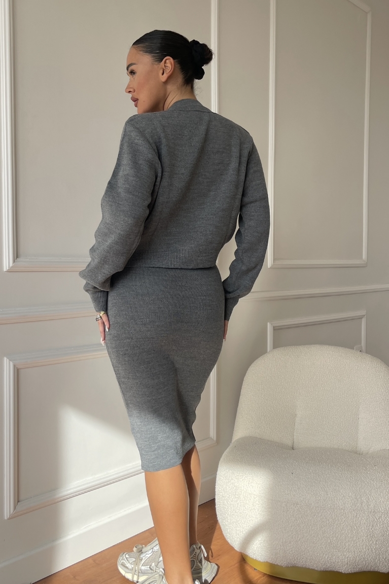 Σετ Φόρεμα Πλεκτό Τιράντα & Ζακέτα Με Φερμουάρ – Γκρι