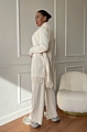 Απογείωσε το στυλ σου με το εκρού σετ που περιλαμβάνει πλεκτή αμάνικη μπλούζα, άνετη παντελόνα και ζακέτα με μοντέρνα κρόσια.