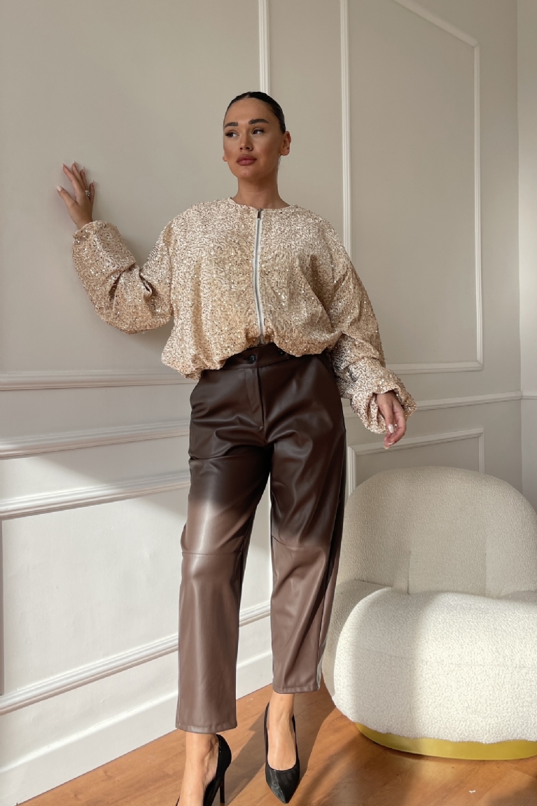 Ζακέτα Με Παγιέτες & Φερμουάρ - Μπεζ