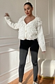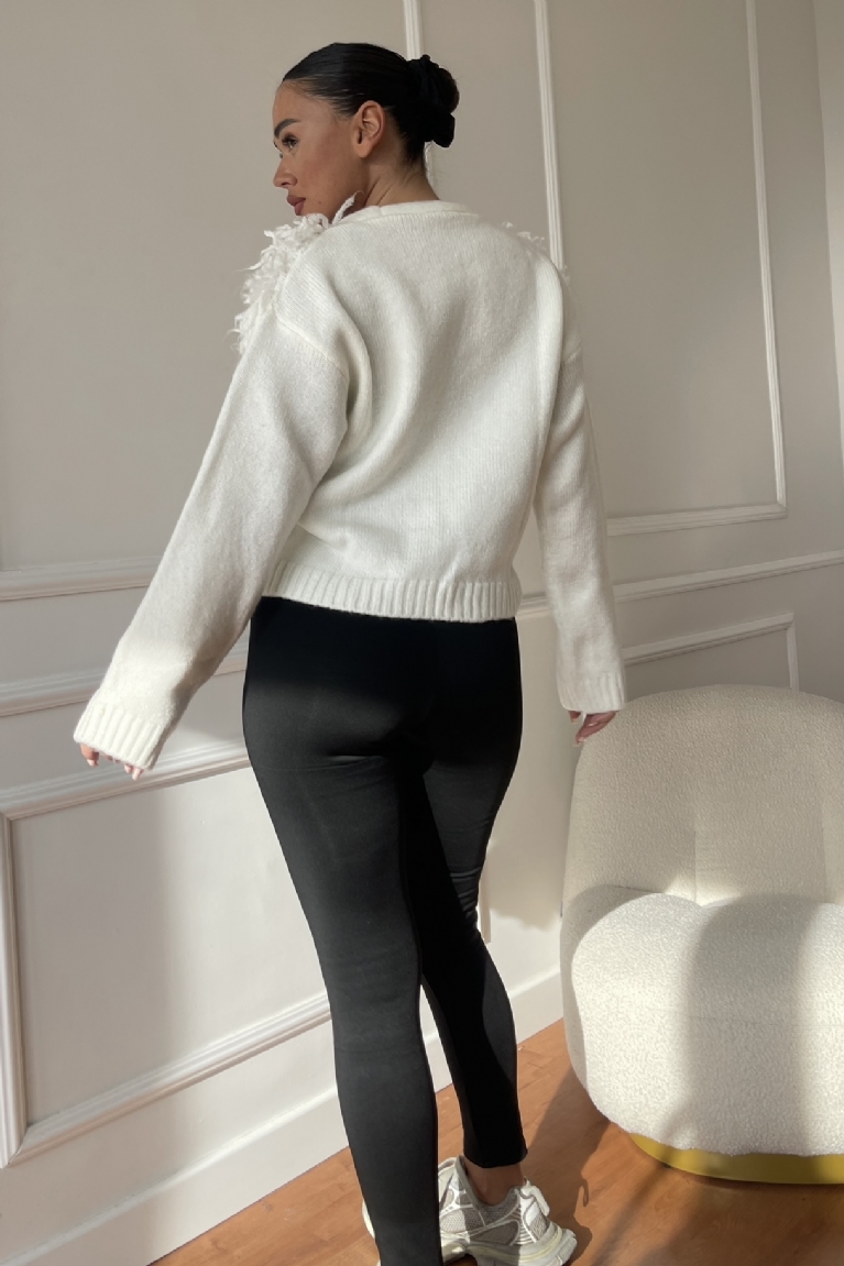 Αναδείξτε το στυλ σας με τη λευκή πλεκτή crop ζακέτα με κουμπιά, ιδανική για formal εμφανίσεις.
