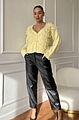 Αναδείξτε το στυλ σας με αυτήν τη μοναδική πλεκτή ζακέτα crop σε φωτεινό κίτρινο χρώμα.