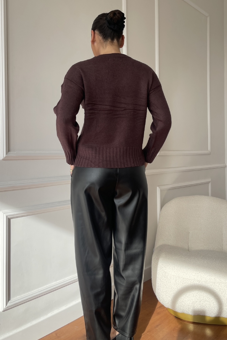 Αναδείξτε το στυλ σας με αυτή την πλεκτή oversize μπλούζα σε κομψό καφέ χρώμα.