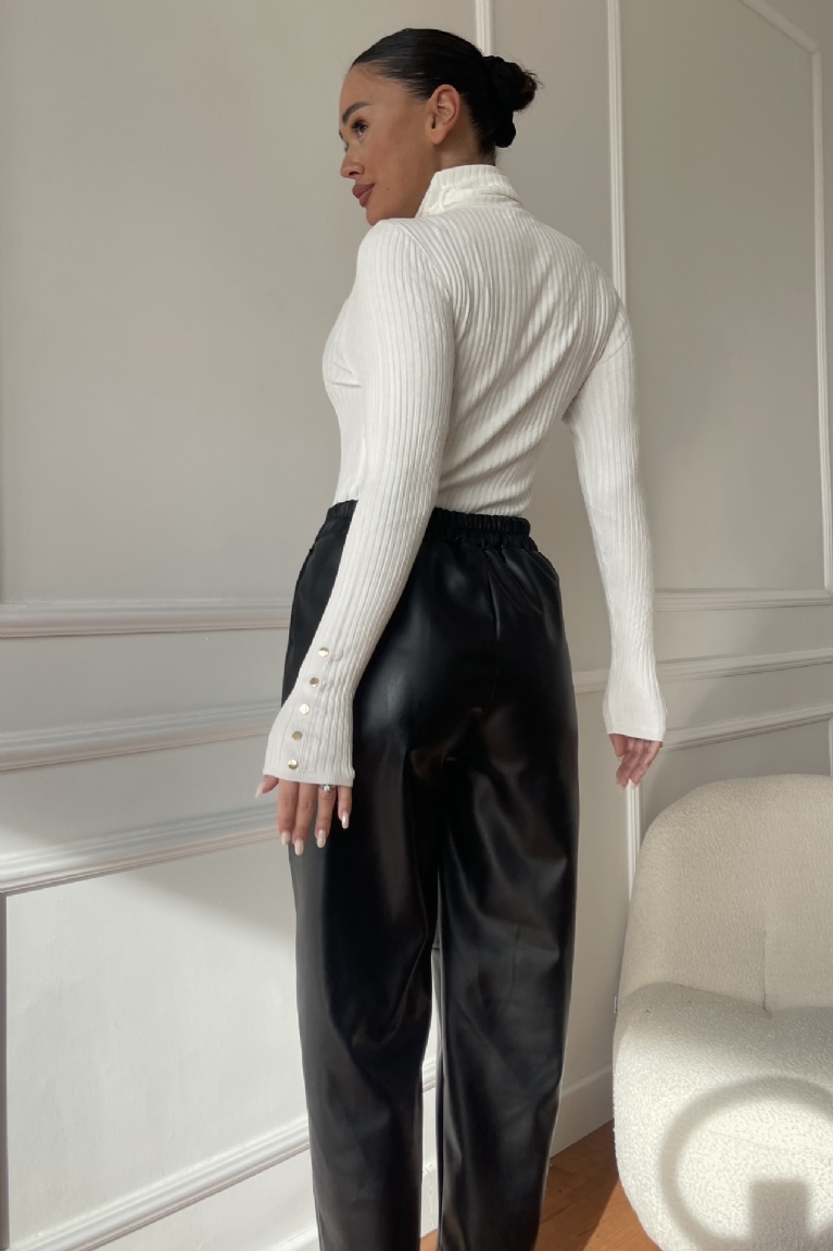 Αναδείξτε το στυλ σας με αυτή τη λευκή πλεκτή ζιβάγκο μπλούζα με κουμπιά στα μανίκια.