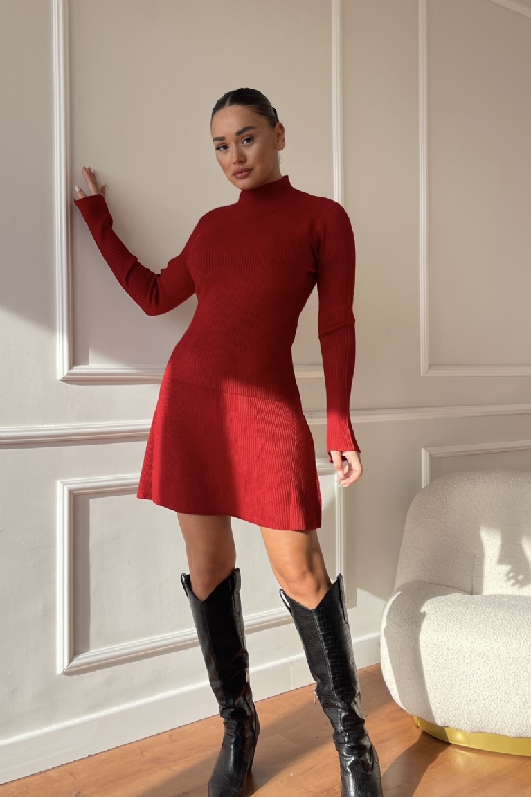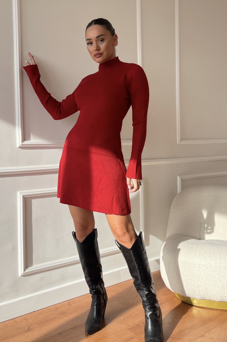 Φόρεμα Πλεκτό Mini Ζιβάγκο - Μπορντό