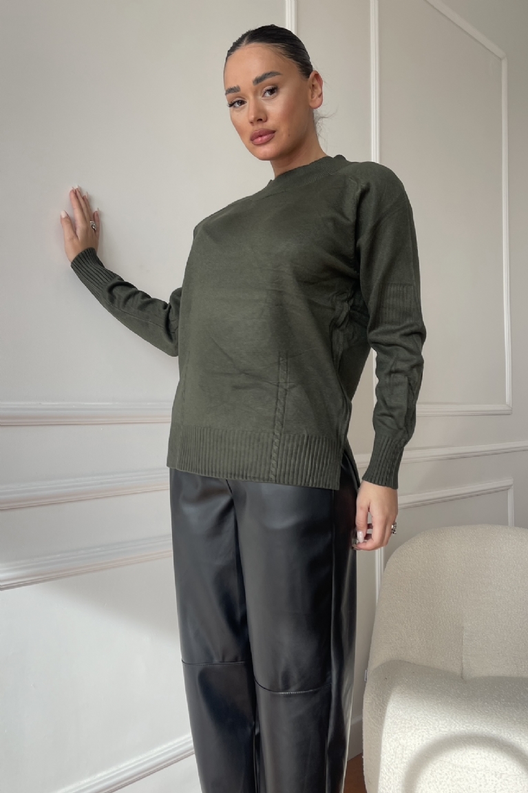 Αναδείξτε το στυλ σας με τη μπλούζα πλεκτή σε εντυπωσιακό χακί χρώμα και μοναδικό σχέδιο πλέξης.