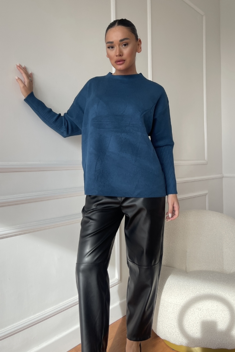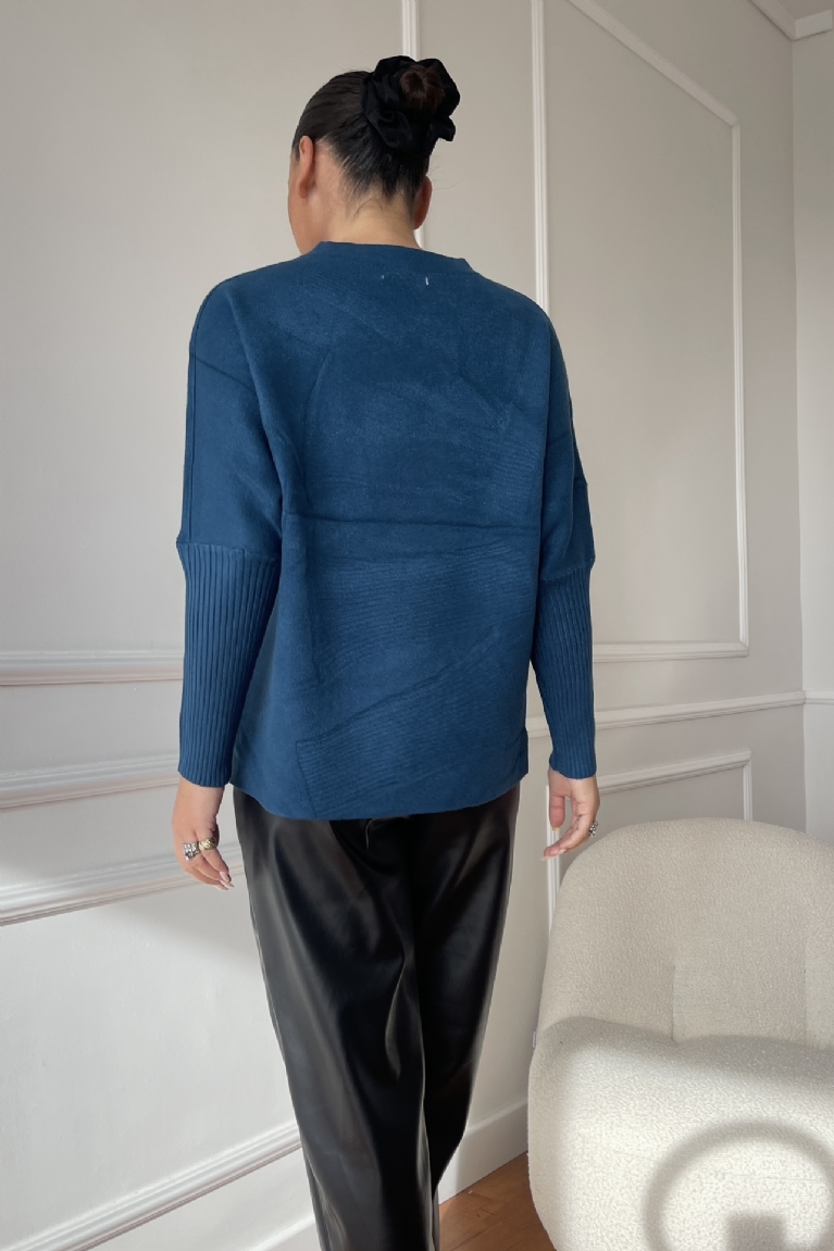 Μπλούζα Πλεκτή Μακρυμάνικη - Πετρόλ