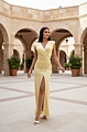 Αναδείξτε τη θηλυκότητά σας με το Maxi Φόρεμα με Σούρες & Σκίσιμο σε λαμπερό κίτρινο χρώμα.