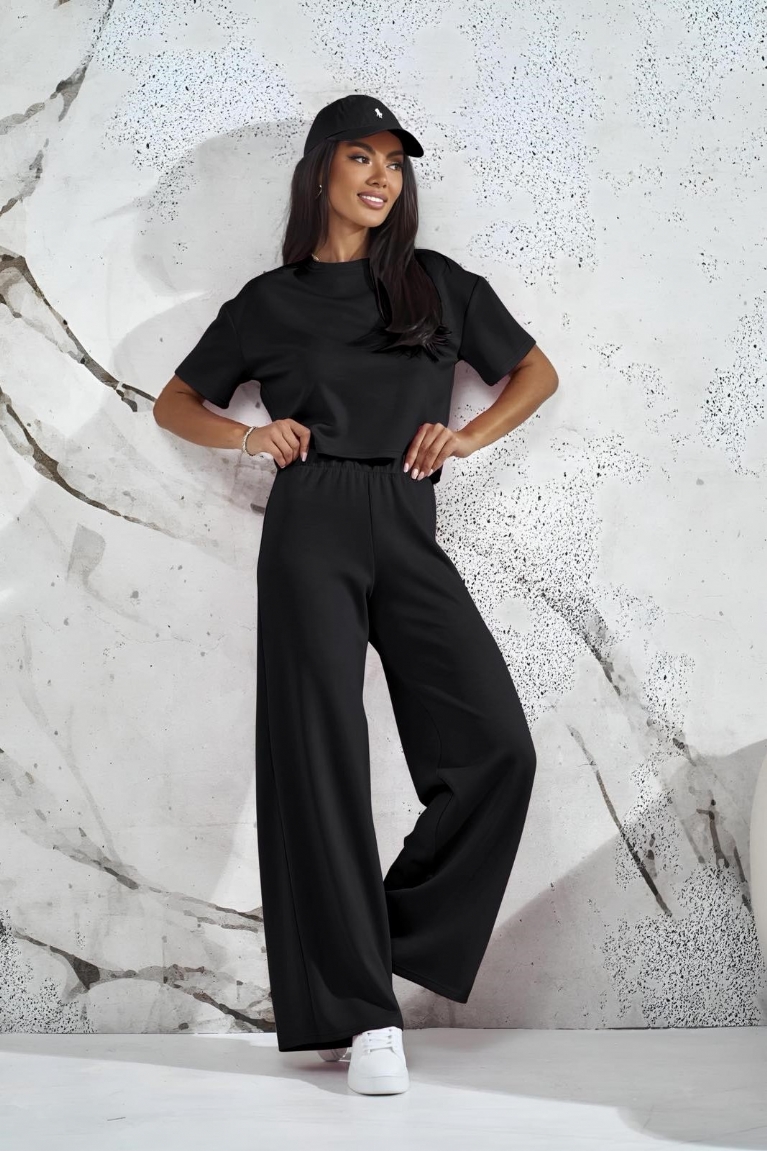 Αναβάθμισε το καθημερινό σου στυλ με αυτό το κομψό σετ παντελόνι με μπλούζα κοντομάνικη σε μαύρο χρώμα.