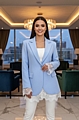 Αναδείξτε το στιλ σας με το γαλάζιο σακάκι που μαγνητίζει τα βλέμματα χάρη στη μοναδική δαντέλα στο τελείωμα.