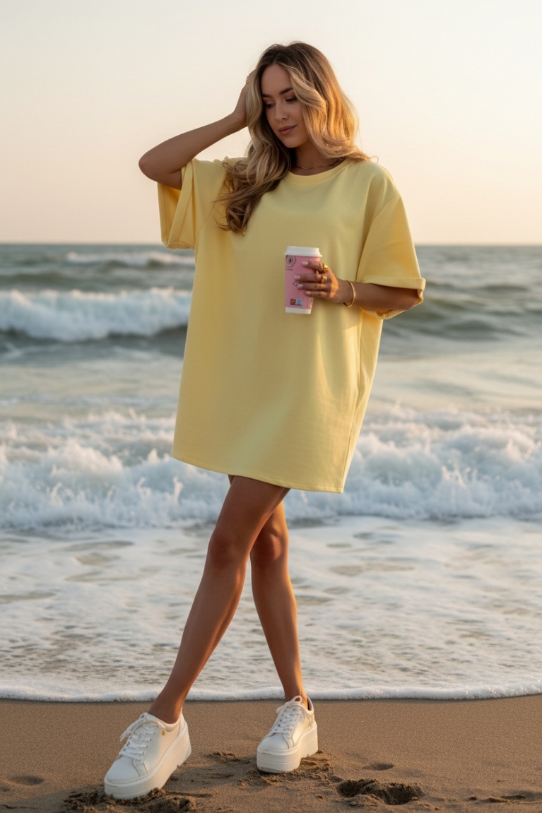 Ανανεώστε το στυλ σας με το oversized μπλουζοφόρεμα σε λαμπερό κίτρινο χρώμα που θα σας χαρίσει αίσθηση ελευθερίας και άνεσης κάθε στιγμή της ημέρας.
