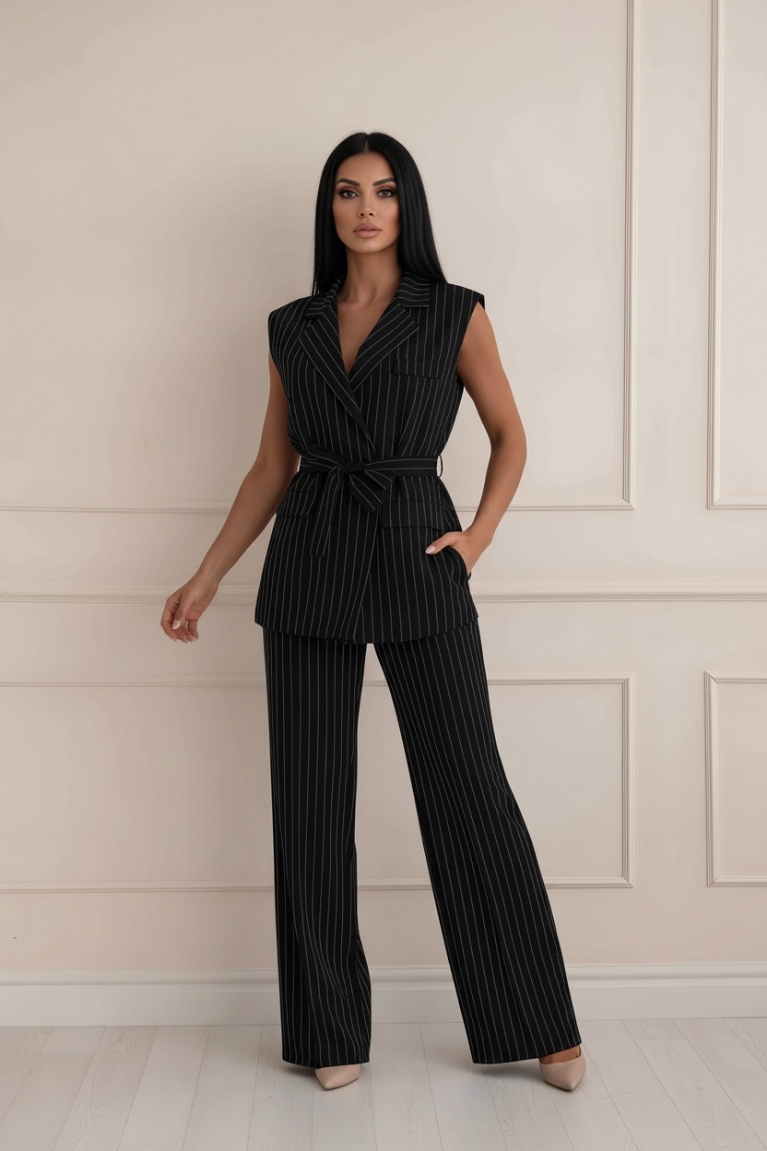 Αναδείξτε το στυλ σας με το Σετ Παντελόνι με Αμάνικο Γιλέκο-ΡΙΓΕ σε μαύρο χρώμα.