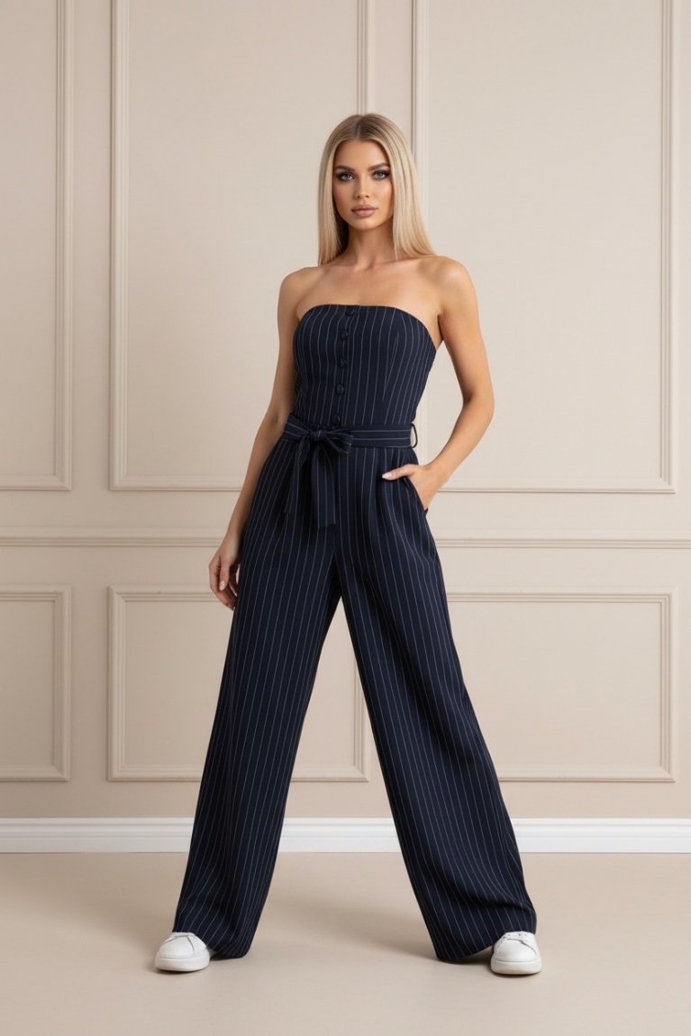 Ολόσωμη φόρμα στράπλες με ζώνη - Μπλε