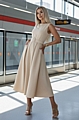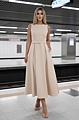 Midi Φόρεμα σε Άλφα Γραμμή με Ζώνη - Μπεζ