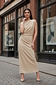 Αναδείξτε το μοναδικό σας στιλ με το maxi φόρεμα με ντραπέ λεπτομέρειες σε κομψό μπεζ χρώμα.