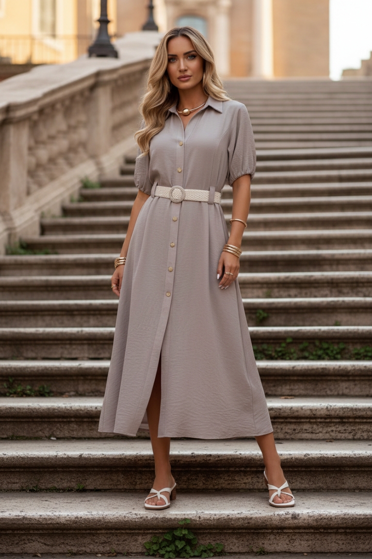 Ο συνδυασμός κουμπιών και ζώνης προσθέτει μια εκλεπτυσμένη πινελιά που θα σας κάνει να ξεχωρίζετε με κάθε σας βήμα.