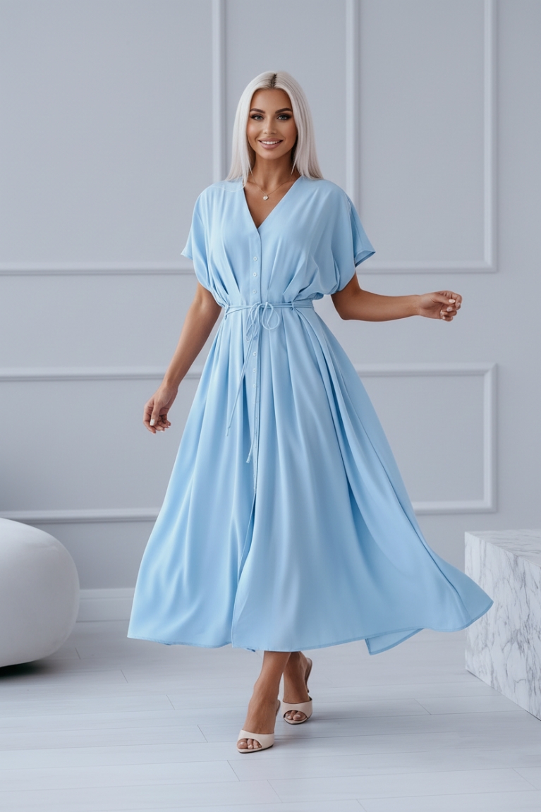Αναδείξτε τη θηλυκότητά σας με αυτό το υπέροχο midi φόρεμα σε γαλάζιο χρώμα.