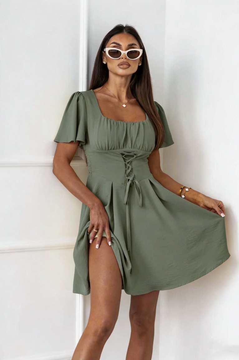 Mini Φόρεμα με Δέσιμο - Χακί