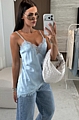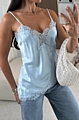 Αναδείξτε τη θηλυκότητά σας με το σατέν τοπ με δαντέλα σε γαλάζιο χρώμα.