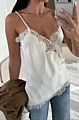 Αναδείξτε τη θηλυκότητά σας με το λευκό σατέν τοπ με δαντέλα που μαγνητίζει τα βλέμματα.