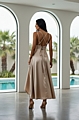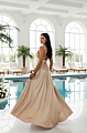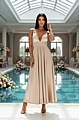 Maxi Φόρεμα με Πλισέ Λεπτομέρειες, Βαθύ Μπούστο & Ανοιχτή Πλάτη - Μπεζ