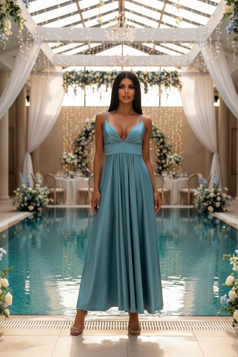 Αναδείξτε τη θηλυκότητά σας με το maxi φόρεμα σε υπέροχη γαλάζια απόχρωση, που μαγνητίζει τα βλέμματα σε κάθε σας εμφάνιση.