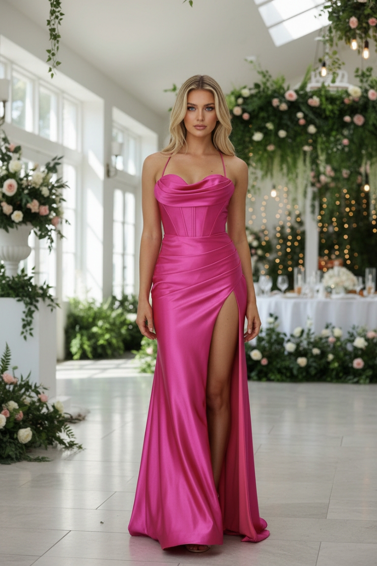 Το σατινέ ύφασμα αγκαλιάζει το σώμα και αναδεικνύει τη σιλουέτα, κάνοντας το ιδανική επιλογή για ιδιαίτερες περιστάσεις.