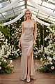 Αναδείξτε τη λάμψη σας με το εντυπωσιακό φόρεμα με παγιέτες και λεπτή τιράντα, σε εκθαμβωτικό χρυσό χρώμα.
