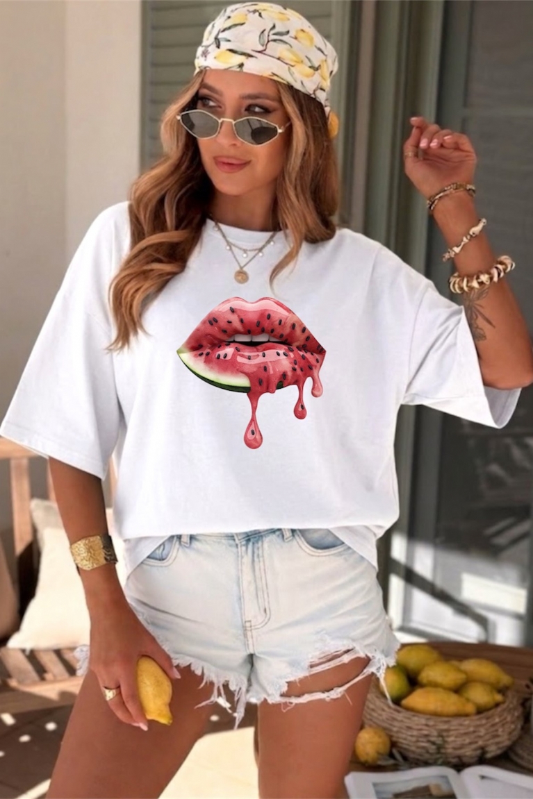 Το εντυπωσιακό του print με χείλη-καρπούζι αποτελεί must επιλογή για όσες λατρεύουν τις statement εμφανίσεις και θέλουν να ξεχωρίζουν κάθε στιγμή.