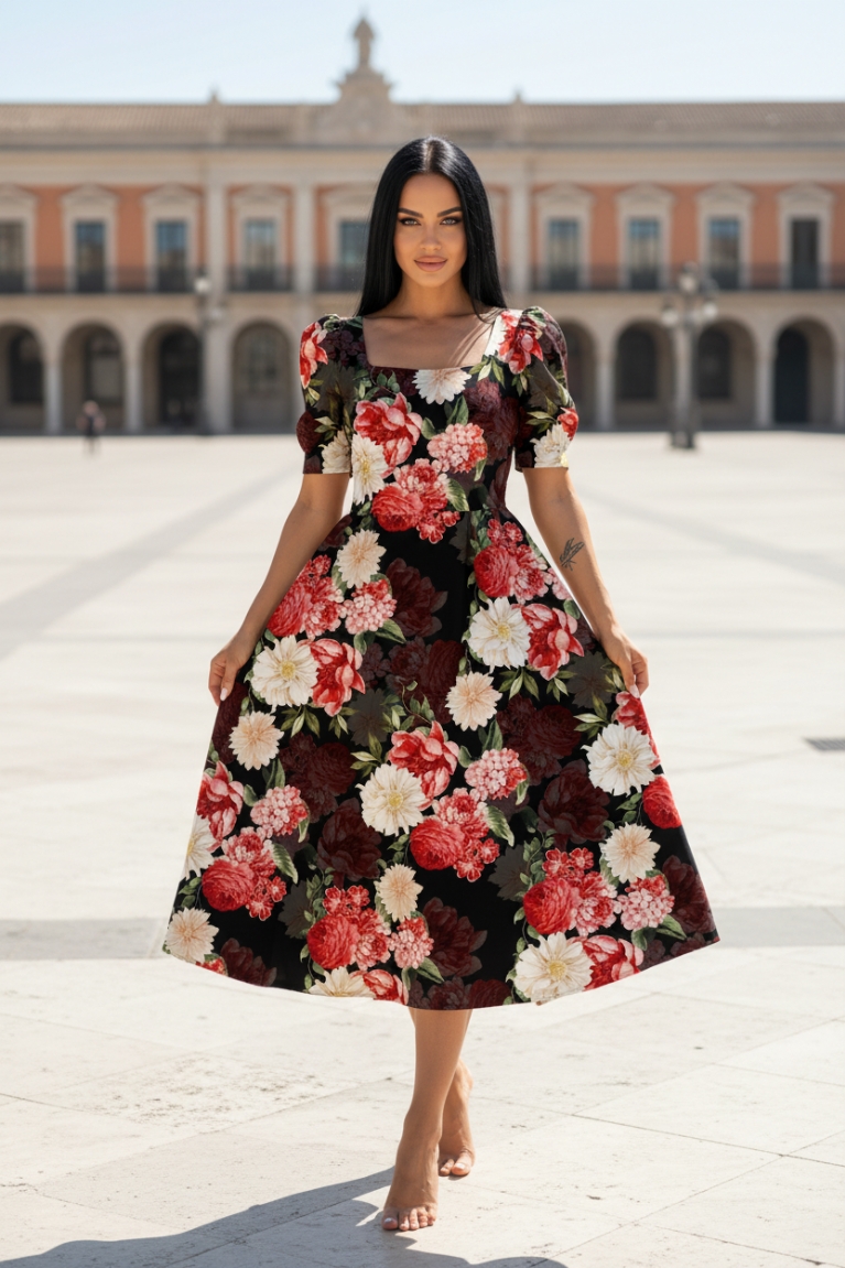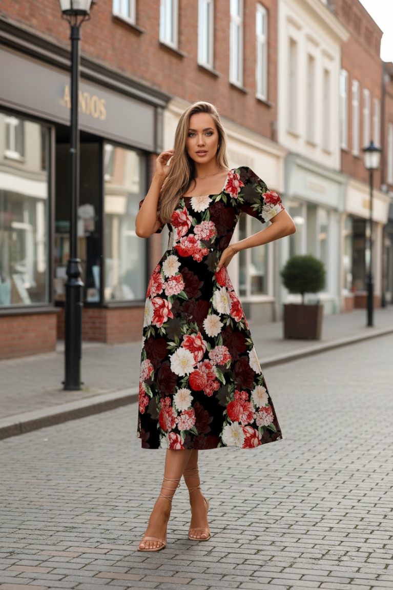 Το εντυπωσιακό floral μοτίβο χαρίζει μοναδική ζωντάνια και χρώμα σε κάθε σας εμφάνιση, ενώ η midi γραμμή του αγκαλιάζει ιδανικά το σώμα.