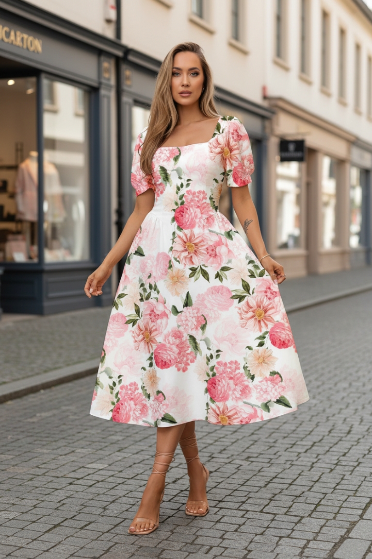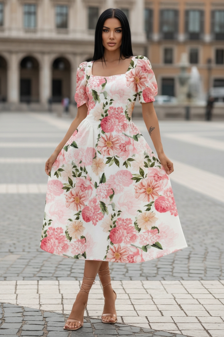 Αναδείξτε τη θηλυκότητά σας με το midi φόρεμα floral σε λευκό χρώμα.